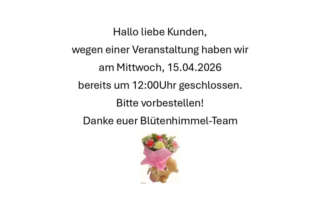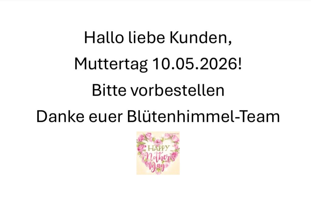 Wir von Blütenhimmel Birgit Weingartner freuen uns auf Ihr Feedback. Veröffentlichen Sie doch eine Rezension in unserem Profil. https://g.page/r/CV1fa5JDLKLQEBE/review